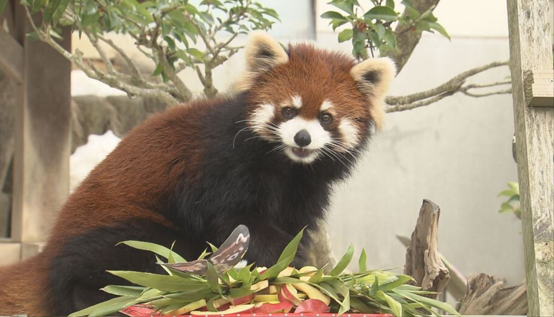 宮城県仙台市の八木山動物園からやって来た5歳の雌のレッサーパンダ「アケビ」が一般公開され、初日から多くのファンが詰めかけています。