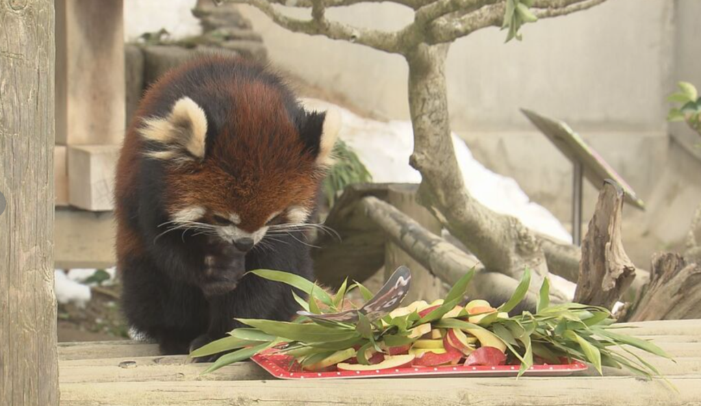 西山動物園に新たに仲間入りしたレッサーパンダ「アケビ」。